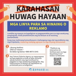 Proteksyon sa mga Karapatan at Interes ng mga Dayuhang Marino na Nagtatrabaho sa mga Sasakyang Pangisda sa Malayong Karagatan sa Taiwan